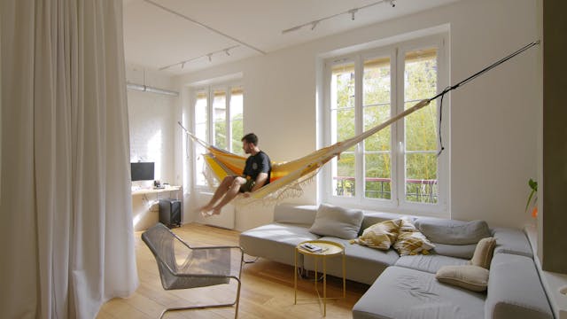 The more playful the better, says Pierre Savajol. The architect and founder of Paris-based PS Studio took Never Too Small on a tour of his 60sqm/645sqft home with a hammock and hidden door – putting the fun in functional.